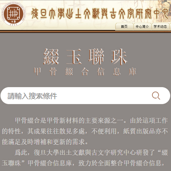 Copyright 2008-2018復(fù)旦大學(xué)出土文獻(xiàn)與古文字研究中心版權(quán)所有 滬ICP備10035774號(hào) 地址:復(fù)旦大學(xué)光華樓西主樓27樓 郵編:200433