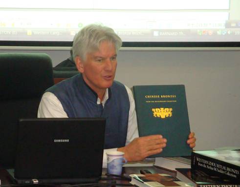15日的第一場講座題為“西方金文學史”。夏含夷教授介紹了自20世紀前葉直至近年一百多年間歐美澳三地的青銅器研究,著重介紹了銅器銘文方面的研究。通過講座,夏含夷教授勾勒出西方青銅器銘文研究的發(fā)展軌跡,并對西方一些主要學者及其研究成果進行了評論。