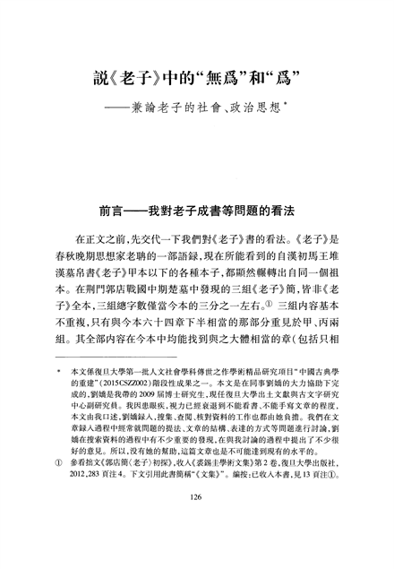 《說〈老子〉中的“無爲(wèi)”和“爲(wèi)”——兼論老子的社會、政治思想》 |
