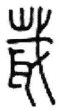 可能來源於該將軍的名字,也可能是耳族和戈族的複合族徽[5]。這個字不見於商代之後的文字[6],將該字與小篆的