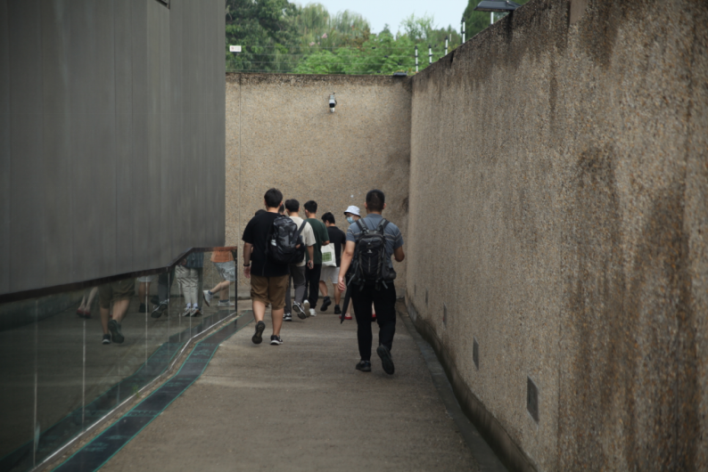 8月24日下午,聯(lián)合考察團(tuán)師生參觀了安陽殷墟王陵遺址。同學(xué)們實(shí)地考察了王陵區(qū)中多個墓葬區(qū)的分布情況及保護(hù)現(xiàn)狀,并按順序參觀了園中“車馬坑陳列館”“王陵墓葬展覽館”“M260展廳”等展陳。