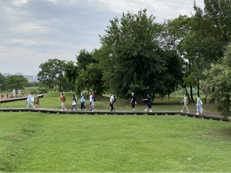 中心考察團(tuán)跟隨工作人員參觀遺址區(qū)