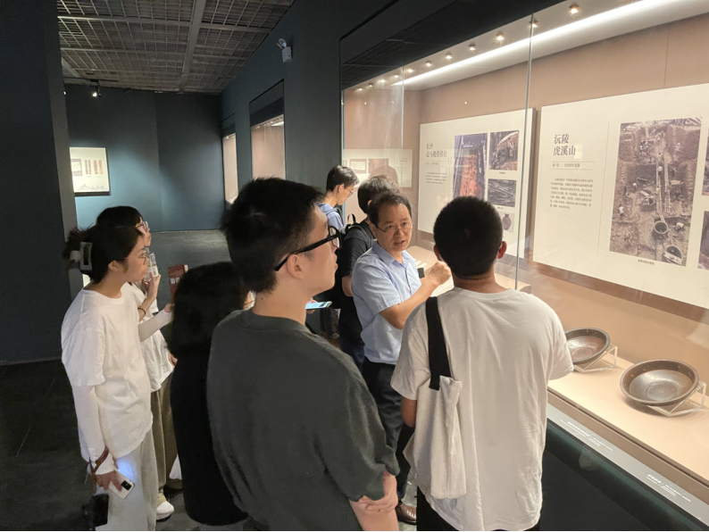 8月30日上午,中心考察團(tuán)來到盤龍城遺址博物院、盤龍城國家考古公園參觀學(xué)習(xí),萬琳院長、宋若虹主任接待了同學(xué)們。同學(xué)們首先參觀了博物院的基本陳列展“江漢泱泱 商邑煌煌”,該展共分為三個展廳,分別為“浪濤千古”“故邑風(fēng)物”“角立南土”。在參觀過博物院的室內(nèi)陳列展后,同學(xué)們來到了戶外的宮殿、城墻遺址展示區(qū)。博物院工作人員為大家詳細(xì)講解了遺址的分布情況與發(fā)掘、保護(hù)的過程。