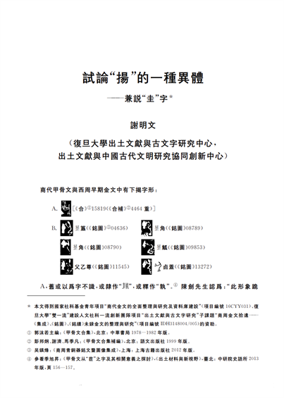 謝明文:《試論“揚”的一種異體——兼說“圭”字》,《甲骨文與殷商史》新九輯(紀念殷墟甲骨文發(fā)現120周年專輯),上海古籍出版社,2019年。