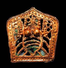 [44] 《隋書·禮儀志七》載開皇制皇太子“遠(yuǎn)游三梁冠,加金附蟬,九首,施珠翠”,大業(yè)制太子“遠(yuǎn)游冠,金附蟬,加寶飾珠翠”,或是其遺制。