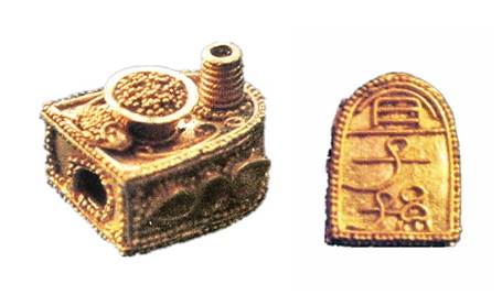 掐絲”或“掐絲鑲嵌”都難以實(shí)現(xiàn)將飾物以金鏈流蘇等組合懸掛。