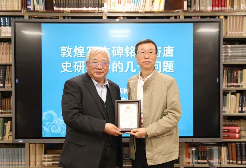 劉釗教授向鄭炳林先生頒發(fā)講座證書