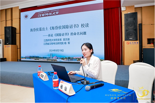 江西師范大學(xué)歷史系系主任、副教授吳方浪和江西省文物考古研究院考古二室研究館員楊軍的論文《海昏侯墓出土〈?;韬顕?guó)除詔書〉校讀——再論〈國(guó)除詔書〉的命名問題》(由楊怡代為發(fā)言)對(duì)海昏侯1號(hào)墓出土的《國(guó)除詔書》從冊(cè)書命名、木牘編聯(lián)、文書結(jié)構(gòu)以及內(nèi)容釋讀等多個(gè)方面做了深入考察。如冊(cè)書的命名,《國(guó)除詔書》相對(duì)籠統(tǒng),命名為“奏請(qǐng)?;韬顕?guó)國(guó)除詔書”更具體明確,屬于“請(qǐng)?jiān)t書”的一種。在冊(cè)書的編連上,根據(jù)文字書寫風(fēng)格的區(qū)別,可細(xì)分為群臣奏請(qǐng)、豫章太守奏文、詔書傳遞記錄、?;韬罴页甲辔?、朝廷政令的執(zhí)行文書和大鴻臚的奏文六類。另對(duì)簡(jiǎn)文作了補(bǔ)釋。如在1799-7“無(wú)道天”前補(bǔ)釋出了“亂漢”二字,將1799-19“地建”補(bǔ)釋為“分地建國(guó)”,在1799-14“放之人”前補(bǔ)出“禮曰廢”三字等。