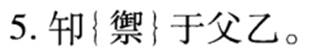 ]?五”。該辭圍繞中甲第二排右側(cè)的鉆鑿刻寫,正面對應(yīng)兆序為“一”。“