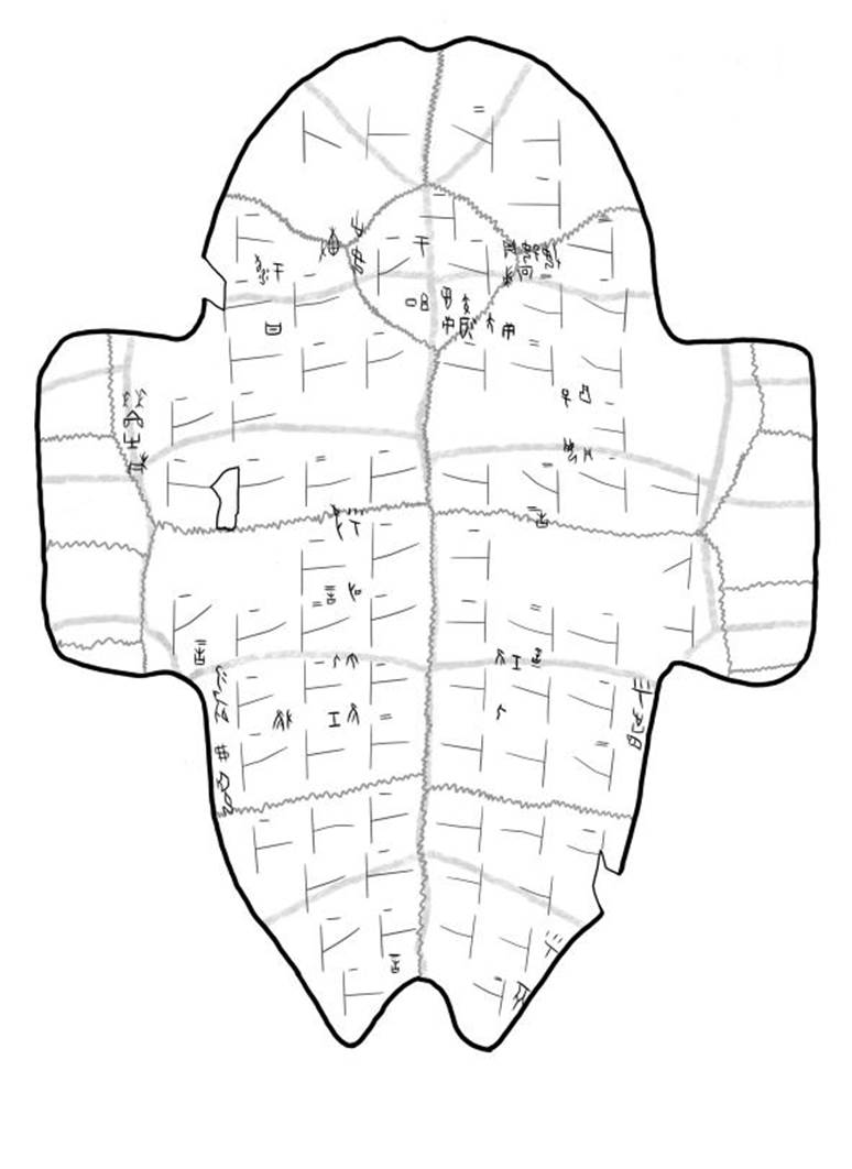 [4] 本文所述左右是以正面為基準,所以即使鉆鑿面在左者,仍以右稱之。本文所述之內(nèi)外均以千里路為內(nèi),邊緣為外。向從另外本文提及第幾排鉆鑿或卜兆時,均是從上向下數(shù),某一排第幾個鉆鑿或卜兆均從中縫向外數(shù),中甲鉆鑿從左往右數(shù)。
