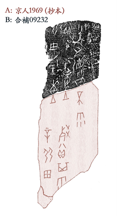 本組綴合與《合集》06284+《京人》1215(林宏明綴,下圖右)爲(wèi)同套卜辭。它們都是賓類卜骨骨扇(面)刻辭。