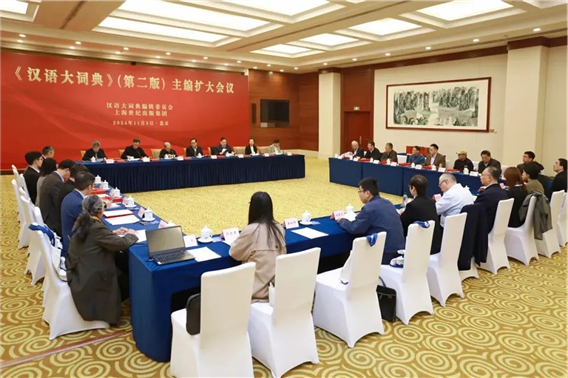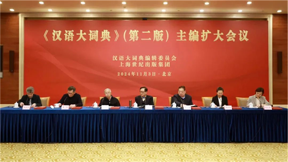 2024年11月3日,《漢語大詞典》(第二版)主編擴大會議在京召開。第十一屆全國人大常委會副委員長、《漢語大詞典》(第二版)主編華建敏同志,中國辭書學(xué)會會長李宇明教授,《漢語大詞典》(第二版)副主編蔣紹愚教授,國家出版基金規(guī)劃管理辦公室副主任劉蘭肖同志,中共上海市委宣傳部出版處處長毛小曼同志,以及新增補的副主編、分冊主編、編委代表出席會議,會議由上海世紀出版集團黨委委員、副總裁毛文濤同志主持。本次會議旨在梳理總結(jié)前一階段工作,安排合卷本工作的各項事宜,并初步謀劃《漢語大詞典》的中長期發(fā)展。