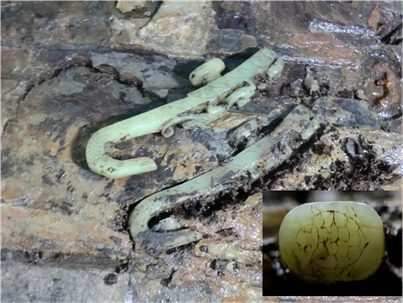7 西漢?;韬钏纳窦y雙子玉帶鉤,長13.2釐米,寬1.46釐米