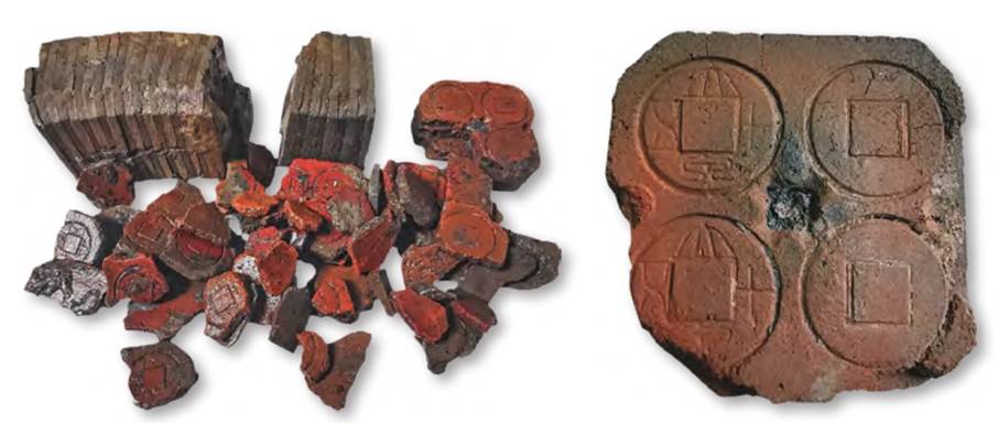 16 “大泉五十”陶製錢範和迭鑄范包,