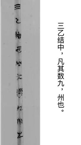 目前所披露的這三個(gè)字謎都是押韻的,韻腳分別為俈、窯、好、羔、九、州,都是幽部開(kāi)口字,其實(shí),第二個(gè)字謎裏的“裘”也是入韻的,“裘”從求聲,《説文》說(shuō)“求”是“裘”的古文,求正是幽部字。這三個(gè)字謎各有兩句謎面,最後是謎底加“也”字煞尾,第一句謎面顯然是拆分字形,第二個(gè)謎面與第一個(gè)謎面往往有關(guān),“羊在火上”與“玄裘”有關(guān),“三乙”與“數(shù)九”有關(guān);而且,第二個(gè)字謎中各有一個(gè)入韻之字能夠與謎底之字組成一個(gè)有意義的疊韻詞——“玄裘甚好”中的“裘”與“羔”組成“羔裘”,“凡其數(shù)九”之“九”與“州”組成“九州”,第二個(gè)謎面的含義與謎底之字本身不一定有直接關(guān)聯(lián),但一定和這個(gè)疊韻詞有關(guān)聯(lián)。