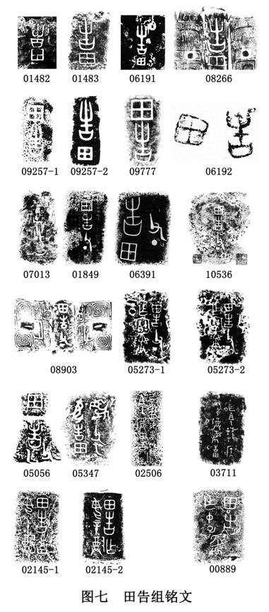 告田觶(06192):內(nèi)底銘“告田?!?/SPAN>現(xiàn)藏中國國家博物館。吳鎮(zhèn)烽先生《金文通鑒》定此器年代為西周中期,但考察其銘文字體形式與此組其他銅器無別,可能屬于商末或周初,有待考察其形制特征。立此存疑。