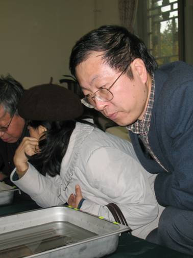 劉釗教授觀看秦簡實物
