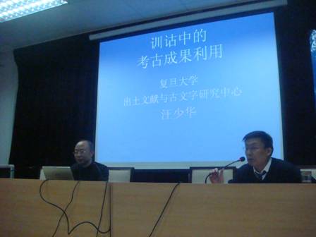 2010年11月16日下午,應(yīng)山東大學(xué)文學(xué)與新聞傳播學(xué)院漢語言文字學(xué)研究所之邀 ,本中心汪少華教授 在山東大學(xué)中心校區(qū)文史樓三樓作題為“訓(xùn)詁中的考古成果利用”的學(xué)術(shù)報(bào)告,山東大學(xué)漢語言文字學(xué)研究所所長(zhǎng)楊端志教授主持報(bào)告會(huì)。