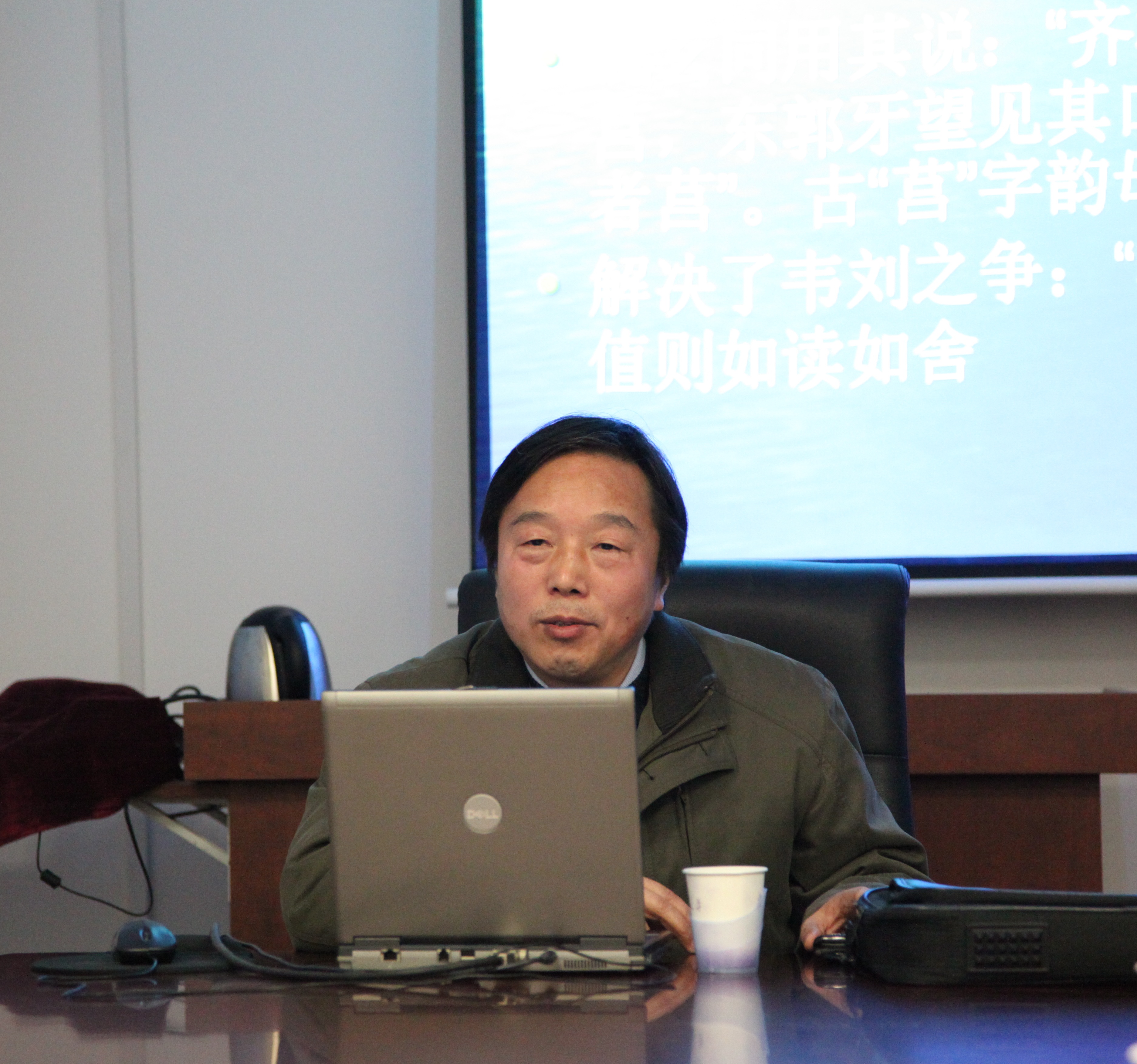 劉教授首先由“車”字音讀上的“韋劉之爭”引出古音學(xué)上麻魚歸屬的問題,以此為出發(fā)點介紹了傳統(tǒng)音韻學(xué)的理論成果及其應(yīng)用,并指出其中存在的問題。接著,劉教授從音值構(gòu)擬與音理解釋兩個方面介紹了現(xiàn)代音韻學(xué)的發(fā)展及研究概況,指出現(xiàn)代古音學(xué)研究的主要成就及六大分歧,并重點討論了古韻系能否再分部的問題。