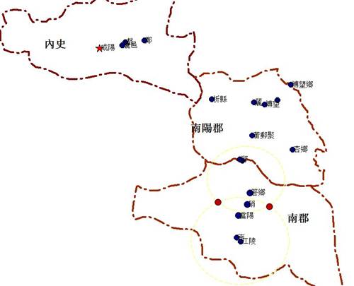 可以看出,三十五年質(zhì)日涉及的地名不出內(nèi)史、南陽郡、南郡。其大致路線是三月底從銷回到江陵,四月自江陵北上,由秦楚大道(荊襄貢道)的支線經(jīng)銷到鄧,由鄧進(jìn)入南陽盆地,在南襄隘道一帶逗留。由於從博望鄉(xiāng)到鄭中間的兩個地名均無考,所以這段路線暫時沒有辦法確定。我們知道,以南陽盆地腹地宛附近爲(wèi)起點,達(dá)咸陽的路線主要有兩條,一支向西北,經(jīng)丹淅通道及武關(guān),入關(guān)中,達(dá)咸陽。另一支是經(jīng)方城缺口北上,入中原後與中原交通網(wǎng)連接到咸陽。[15] 考慮到博望鄉(xiāng)的位置,我們傾向於簡文記錄者由第二條路徑入關(guān),入關(guān)後經(jīng)鄭到達(dá)咸陽,在咸陽盤桓九天後,離開咸陽往東經(jīng)麗邑、鄭,五月可能是順丹水而下由關(guān)中回到南陽盆地,一路往南到鄾鄉(xiāng)後又再次向西北走,到析,整個旅行的終點是一個不知名的環(huán)望。
