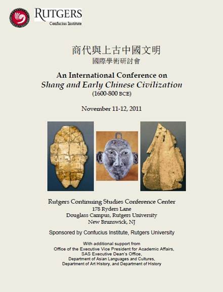 2011年11月11~12日,由美國羅格斯大學(xué)孔子學(xué)院(Confucius Institute,Rutgers University)主辦的“商代與上古中國文明國際學(xué)術(shù)研討會”(An International Conference on Shang and Early Chinese Civilization ,1600-800 BCE)在羅格斯大學(xué)新伯朗士威校區(qū)(New Brunswick)召開。本次會議共提交論文20餘篇。