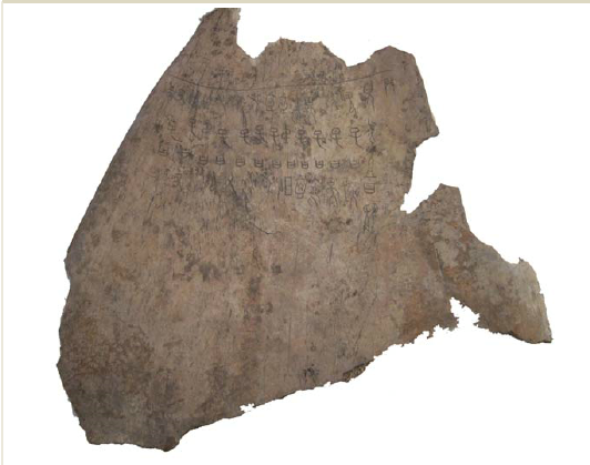 骨版為實驗組將其上54個刻字分別放大照相及觀察外,更以真刻與偽刻並存於同一牛肩胛骨版之《庫》1619/《英藏》2512骨版作為實驗之對照組也同時進行顯微鏡觀察照相。筆者發(fā)現(xiàn)就骨版裂紋之產(chǎn)生與人為刻劃先後時間的物理關(guān)係,可以區(qū)別出四種裂紋。這四種裂紋在家譜刻辭的全版分佈與其在《庫》1619版上真刻的全版分佈幾乎完全相同,而與同版的偽刻則完全不同。這樣以全版刻辭進行觀察分析並以同版已知之真?zhèn)慰剔o作對照比較所得的數(shù)據(jù)提供了客觀證據(jù)強力支持家譜刻辭確為真品。持偽刻說者所提理由主要仍著眼在“可疑”二字,然而是否可疑,見仁見智,不足以作為客觀證據(jù)。于省吾就文字構(gòu)形理論所提真品說之理由已經(jīng)相當(dāng)堅實,無懈可擊。結(jié)合艾蘭所提鑑別真?zhèn)蔚奈锢頊蕜t,再加上本文對《庫》1506及《庫》1619二片牛肩胛骨版的分析數(shù)據(jù),筆者以為兒氏家譜刻辭之確為真品應(yīng)是定論,可視為商代出土之文獻素材。以是本文也嘗試發(fā)掘兒氏家譜刻辭可能含有的學(xué)術(shù)意義。Abstract: