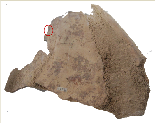 圖2《庫》1506背面。紅圈處為有灼痕的半個鑿眼。