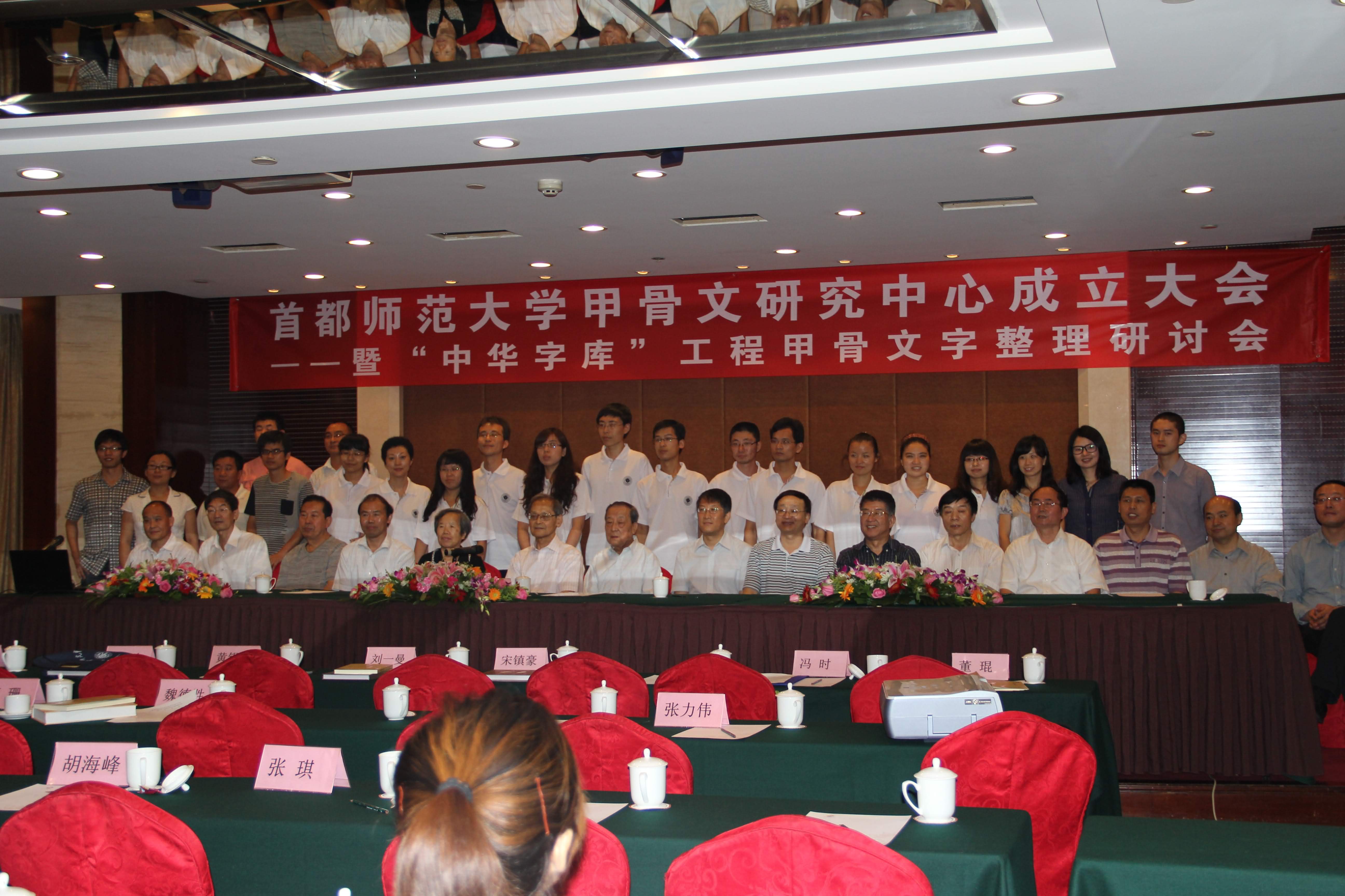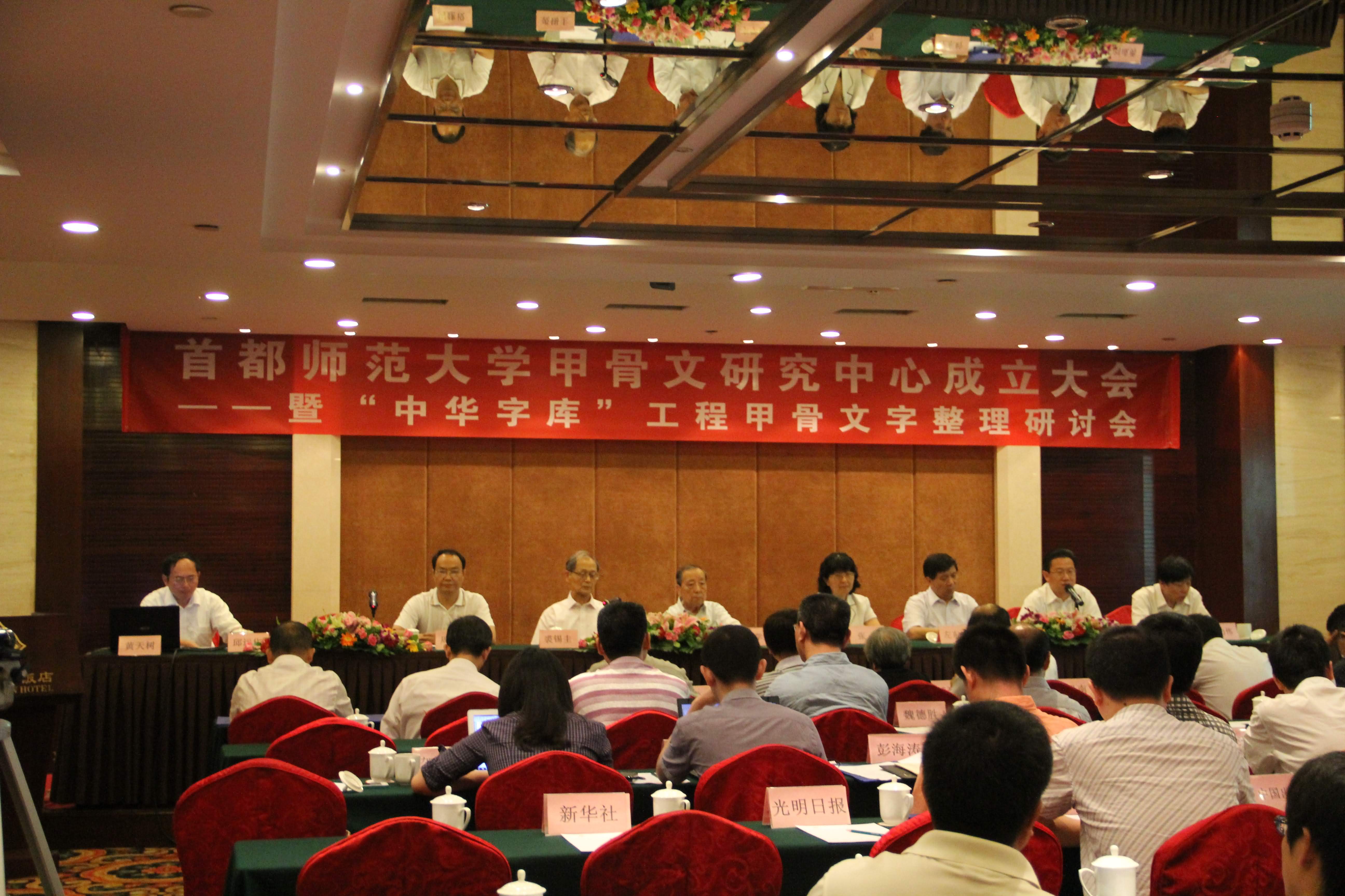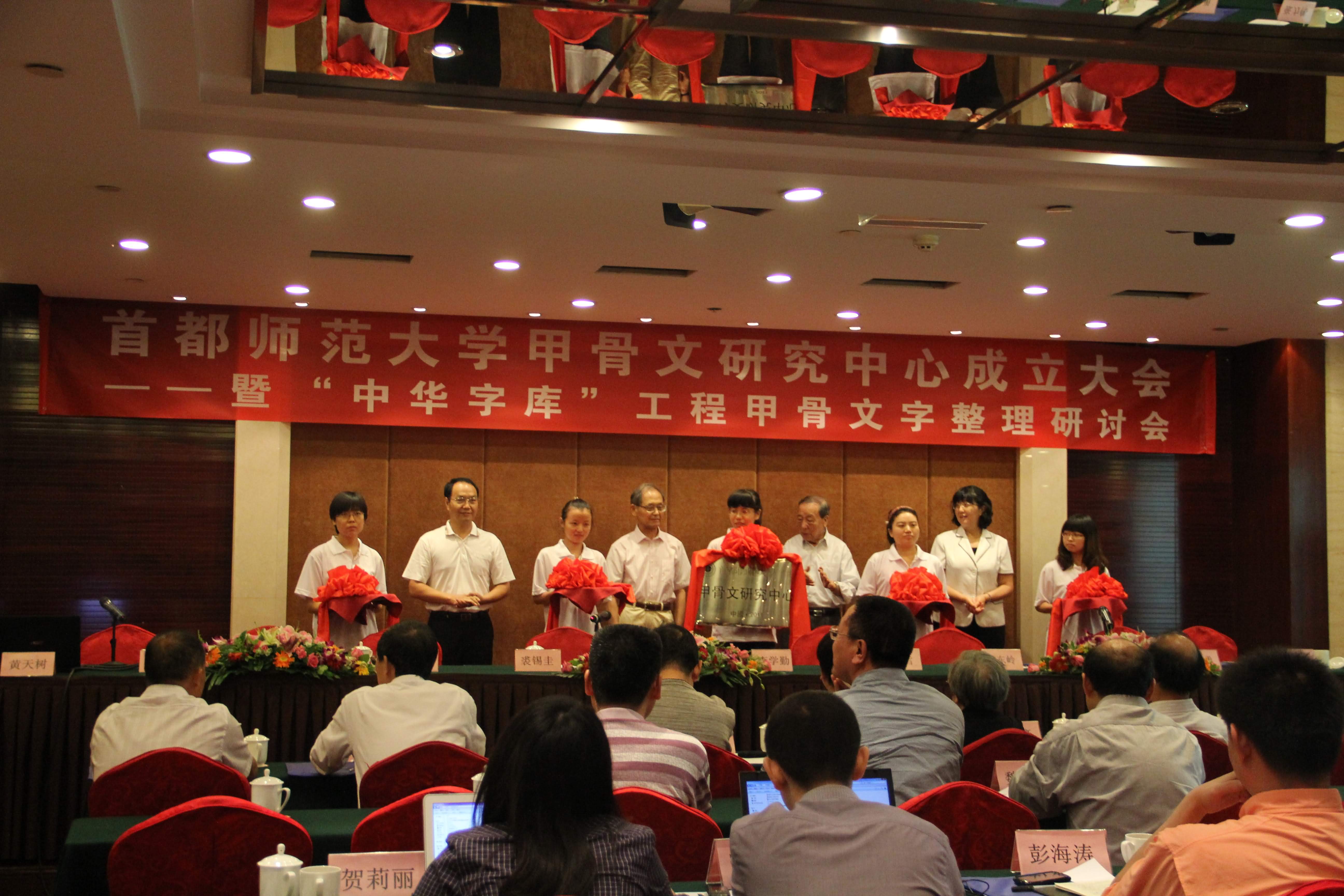 2012年8月27日上午9點30分,“首都師範大學甲骨文研究中心成立大會”在北京金龍?zhí)洞缶频昱e行。著名古文字學家李學勤先生和裘錫圭先生代表嘉賓致辭,並與首都師範大學黨委書記張雪、副校長周建設(shè)共同為中心成立剪綵。