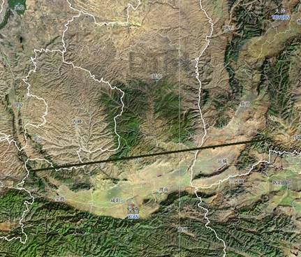 孤峰山乃是峨嵋臺(tái)地的最高峰。峨嵋臺(tái)地位于臨汾盆地與運(yùn)城盆地之間,《讀史方輿紀(jì)要》描述它說:“《志》云:山迤邐連聞喜、夏、猗氏、臨晉、榮河諸縣界,西抵黃河,東抵曲沃西境。亦曰峨眉坡,亦曰峨眉原,即中條之坡阜也?!?A title="" href="#_edn14" name=_ednref14>[14]峨嵋臺(tái)地與中條山之間隔著運(yùn)城盆地,為什么說它是“中條之坡阜”呢?要回答這個(gè)問題,還得從《禹貢》說起。古代的學(xué)者解釋《禹貢》“道九山”,將之“分為三條”,[15]即南條、北條和中條。據(jù)作者研究,《禹貢》“道岍及岐,至于荊山,逾于河,壺口、雷首,至于太岳”系列正是三條中的“中條”(詳見作者的博文《國(guó)字的造字象形與本義》)。《禹貢》“道岍及岐,至于荊山,逾于河,壺口、雷首,至于太岳”系列中,“道岍及岐,至于荊山”部分在黃河以西,關(guān)中盆地北部,即所謂北山大斷裂;“逾于河”以后“壺口、雷首,至于太岳”部分在黃河以東,臨汾盆地與運(yùn)城盆地之間,即所謂的峨嵋臺(tái)地。此系列的黃河?xùn)|、西兩部分合起來大體上呈一條直線(見圖一),這條直線就稱作中條,臨汾盆地與運(yùn)城盆地之間的峨嵋臺(tái)地正是其中的一部分,其中條山的名稱,也是由此而來。后來的人們不解“中條”的意思,看到今名中條山山勢(shì)狹長(zhǎng)延柔,以為就是“中條山”名稱的由來,[16]遂將“中條山”這個(gè)地名向南搬遷至涑水河以南、黃河以北,今名所在,連帶雷首山之名也隨著搬了過去。