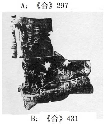 由此可見,類似文例的比勘是解決「白羌」問題的重要關(guān)鍵。至於卜辭中「白」、「百」二字用法雖然大部分確實判然有別,但如同曹先生所指出,仍存在少數(shù)混用的情形,在前引諸例之外筆者另舉《合》297為例來說明。此版由首都師範大學(xué)何會女士加綴《合》431,參見附圖貳,其相關(guān)辭例如下:[10]