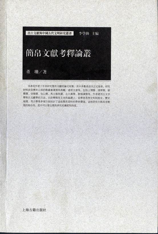 董珊先生著《簡帛文獻考釋論叢》於2014年1月由上海古籍出版社出版。本書平裝16開,定價52元。