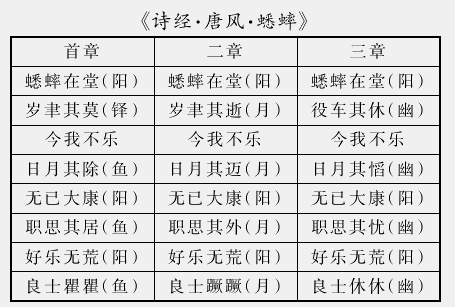 簡(jiǎn)文《蟋蟀》的用韻從我列表中可以看出,較毛詩(shī)《唐風(fēng)·蟋蟀》要松散一些,毛詩(shī)《唐風(fēng)·蟋蟀》可以說(shuō)是非常規(guī)整的隔句韻……并且四字一句,所以無(wú)論從詩(shī)行和詩(shī)韻來(lái)說(shuō)都是非常整齊的。相比之下,簡(jiǎn)文《蟋蟀》一詩(shī),詩(shī)行衍生了二句,變?yōu)槭?;?shī)句偶有五言,并非整齊的四言詩(shī);詩(shī)韻則為鐸鐸之藥月鐸陽(yáng)鐸陽(yáng)魚(yú),雖然魚(yú)與鐸為陰入對(duì)轉(zhuǎn)可通韻,但其不規(guī)則的用韻效果顯然是不及毛詩(shī)《唐風(fēng)·蟋蟀》……以簡(jiǎn)文《蟋蟀》與毛詩(shī)《唐風(fēng)·蟋蟀》兩個(gè)文本之間的關(guān)系而論,實(shí)際上存在著如下幾種可能: