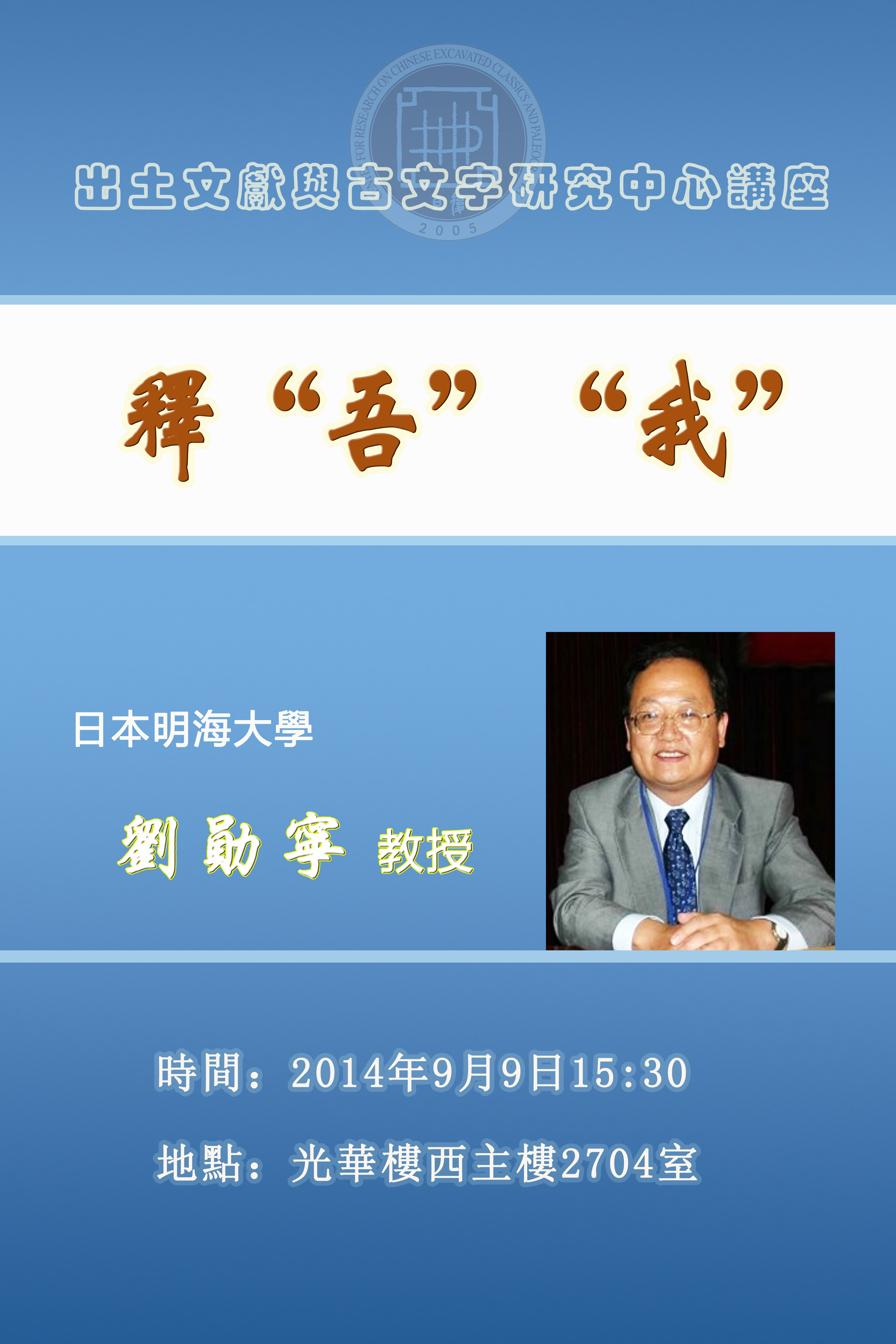 日本明海大學(xué)劉勛寧教授將於2014年9月9日下午在我中心作題為“釋‘吾’‘我’”的學(xué)術(shù)講座。