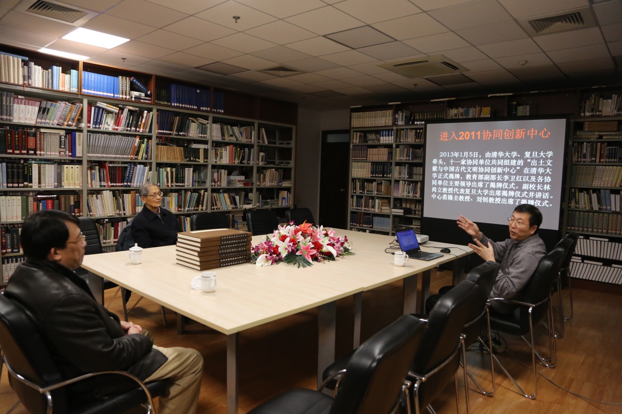 2015年2月6日上午,復(fù)旦大學(xué)黨委書記朱之文到我中心調(diào)研并指導(dǎo)工作。我中心裘錫圭教授、劉釗主任向朱書記匯報了中心人員、承擔(dān)項目、已出成果、學(xué)生培養(yǎng)、學(xué)術(shù)交流等方面的基本情況,重點(diǎn)介紹了《長沙馬王堆漢墓簡帛集成》的整理出版以及進(jìn)入2011協(xié)同創(chuàng)新中心的相關(guān)情況;還反映了中心發(fā)展遇到的一些困難。朱書記悉心聽取了匯報,對中心取得的成績給予肯定,并表示全力支持中心的工作,研究解決中心發(fā)展遇到的困難。
