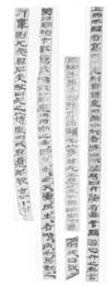 不過(guò),上舉第5簡(jiǎn)簡(jiǎn)尾有“百廿七字”的計(jì)數(shù)。從目前五段簡(jiǎn)上保留的總字?jǐn)?shù)看,除去第5簡(jiǎn)的“百廿七字”4字,這五段簡(jiǎn)共餘36+25+6+33(不計(jì)重文)+21=121字,距所謂“百廿七字”只缺6字。但是,從內(nèi)容上看,這四段內(nèi)容並不連貫:第1簡(jiǎn)“亢之爲(wèi)言”之後應(yīng)有別的內(nèi)容,可能還有別的缺簡(jiǎn);第2簡(jiǎn)殘去上部5-6字,跟《孝經(jīng)·孝治章》對(duì)照,殘去的部分不可能容下“昔者明王之以孝治天下也,不敢遺小國(guó)之臣”之類(lèi)的內(nèi)容,其前應(yīng)有別的缺簡(jiǎn);第3簡(jiǎn)爲(wèi)殘片,它是否能跟第2簡(jiǎn)拼綴,還有待證實(shí);第4簡(jiǎn)雖然內(nèi)容上比較完整,但它跟其他簡(jiǎn)內(nèi)容上的關(guān)係不明確;第5簡(jiǎn)開(kāi)始就說(shuō)“《行葦》則兄弟俱暱矣”,從文氣上看,前面也應(yīng)該有其他內(nèi)容,很可能存在缺簡(jiǎn)??傊@五簡(jiǎn)雖然內(nèi)容上都跟《孝經(jīng)》有關(guān),但可能並不屬於同一篇章??赡苓@種《孝經(jīng)》傳注或解說(shuō)包含兩個(gè)以上的章節(jié),第5簡(jiǎn)末尾所記字?jǐn)?shù)可能只是其中一個(gè)章節(jié)的字?jǐn)?shù)。像馬王堆漢墓帛書(shū)《老子》乙本卷前佚書(shū)前兩篇那樣,大篇內(nèi)都分小篇,每小篇之末都記篇名,第一篇分九個(gè)小篇(《道法》、《國(guó)次》、《君正》、《六分》、《四度》、《論》、《亡論》、《論約》、《名理》),最後一篇篇名“名理”之下記“經(jīng)法凡五千”,是總篇名和字?jǐn)?shù)。第二篇分15小篇,前14小篇之末都記篇名(《立[命]》、《觀》、《五正》、《果童》、《正亂》、《姓爭(zhēng)》、《雌雄節(jié)》、《兵容》、《成法》、《三禁》、《本伐》、《前道》、《行守》、《順道》),最後一小篇本身無(wú)篇名,下記“十大經(jīng)凡四千□□六”是總篇名和字?jǐn)?shù)。[21]雖然這兩篇下的小篇之末只記篇名而不記字?jǐn)?shù),不過(guò)既然是相對(duì)獨(dú)立的小篇,每篇末記篇內(nèi)字?jǐn)?shù)的情況也可能存在??上壳皝K沒(méi)有見(jiàn)到類(lèi)似的、末尾記字?jǐn)?shù)的其他簡(jiǎn)文。【今按:按照廣瀨薰雄先生的指點(diǎn),簡(jiǎn)73EJT31:44A+T30:55背下端書(shū)有簡(jiǎn)序號(hào)“七十二”,簡(jiǎn)73EJT31:102背下端書(shū)有簡(jiǎn)序號(hào)“八十二”,簡(jiǎn)73EJT31:104背下端書(shū)有簡(jiǎn)序號(hào)“百四”,以及下面提到的簡(jiǎn)73EJT31:42背下端書(shū)有簡(jiǎn)序“六十八”,這些序號(hào)表明我們討論的幾支簡(jiǎn)之間的缺簡(jiǎn)很多。另外,31號(hào)探方中還有一支簡(jiǎn),即73EPT31:101,正面書(shū)寫(xiě)的文字“