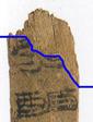從此圖可以看出,《英藏》3446下端與《英藏》3122上端削薄處邊緣密合?!队⒉亍?SPAN>3122“恌”字上方仍有一筆殘筆,這似乎是此拼綴的反證;但該筆畫(huà)墨跡很淡,又位於削薄處,當(dāng)是簡(jiǎn)面的墨跡滲透而成,拼綴之後這些筆跡亦與《英藏》3446“逋”字之左下方筆畫(huà)相重疊,這反而爲(wèi)此拼綴提供了佐證。此外,由於同簡(jiǎn)內(nèi)“服”、“逋”二字字體的不同,其字間距與《英藏》3122“逋恌〈逃〉隱〔匿〕”字間距有別亦在情理之中。綴合後,此二簡(jiǎn)釋文當(dāng)改爲(wèi)“