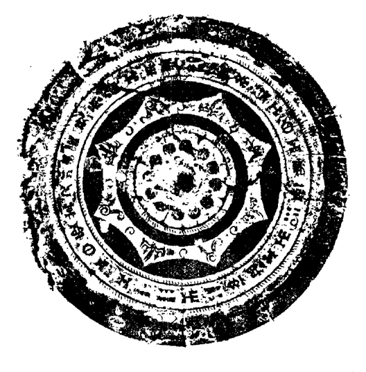 與?;韬钅广~鏡的外圈銘文相同的鏡銘,還見于甘肅涇川縣水泉寺出土的一面“清白鏡”,簡報描述其形制為:圓鈕,八連弧。銹蝕嚴(yán)重,直徑15.6cm,厚0.6cm。銘文右旋,釋文為: