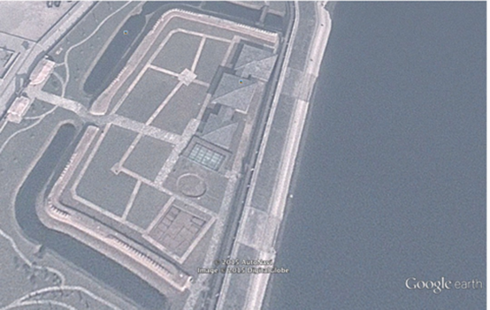 圖四:谷歌地球上的湘西里耶古城遺址。