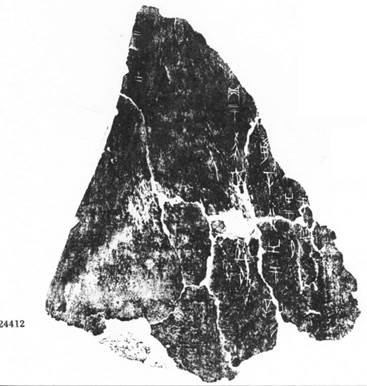 這版胛骨,現(xiàn)存為骨扇部分。由於殘缺較多,不宜判斷骨臼方向以及成套的次序。