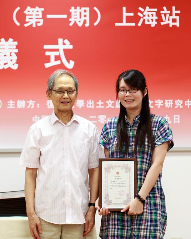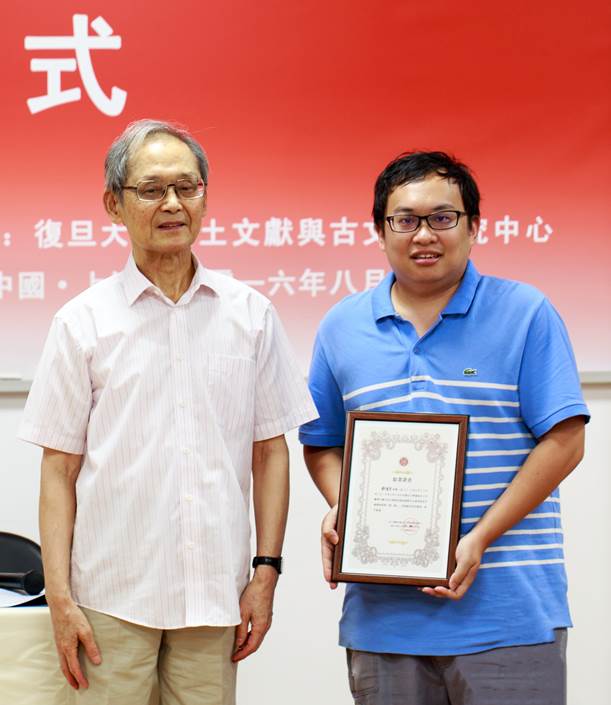 19日下午,研習(xí)營舉辦結(jié)業(yè)儀式。結(jié)業(yè)儀式由劉釗教授主持。裘錫圭教授向研習(xí)營學(xué)員頒發(fā)結(jié)業(yè)證書。