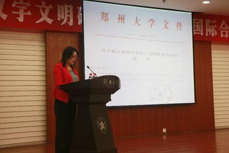 楊云香院長宣讀了漢字文明研究中心成立文件