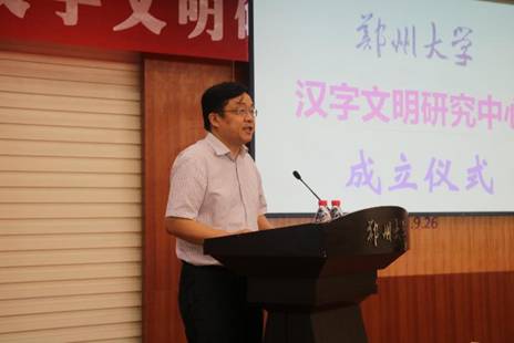 成立儀式由鄭州大學(xué)副校長劉國際教授主持。鄭州大學(xué)黨委書記牛書成首先致辭,他代表學(xué)校向與會(huì)專家學(xué)者表示熱烈歡迎,并簡要介紹了學(xué)校的基本情況。同時(shí)指出鄭州大學(xué)作為河南省高等教育的排頭兵,始終堅(jiān)持立足中原,以挖掘和傳承中原歷史文化為己任,積極推動(dòng)華夏歷史文明傳承創(chuàng)新區(qū)建設(shè)和文明河南建設(shè)。學(xué)校引進(jìn)李運(yùn)富教授領(lǐng)銜的學(xué)術(shù)創(chuàng)新團(tuán)隊(duì)設(shè)立漢字文明研究中心,將進(jìn)一步提升學(xué)校語言文字學(xué)科的學(xué)術(shù)水平和研究實(shí)力,助推河南省由漢字資源大省向漢字研究強(qiáng)省邁進(jìn)。最后,他對中心的建設(shè)寄予殷切希望,一要以學(xué)術(shù)團(tuán)隊(duì)建設(shè)為基礎(chǔ),匯聚一流人才;二要瞄準(zhǔn)學(xué)術(shù)前沿,推出一系列創(chuàng)新性和標(biāo)志性學(xué)術(shù)成果;三要加強(qiáng)國際交流,不斷提升漢字研究國際影響;四要積極融合校內(nèi)科研資源,構(gòu)建相融互補(bǔ)的研究平臺(tái)。