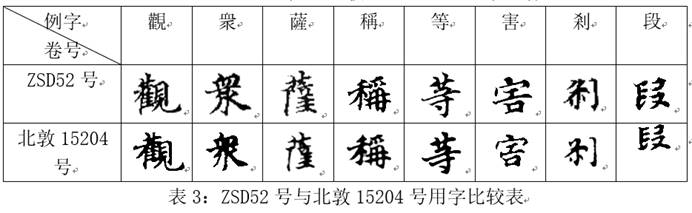 ZSD52號(hào)原卷無(wú)題,《中國(guó)書(shū)店》擬題為“妙法蓮華經(jīng)卷七”。北敦15204號(hào)卷末存有尾題“觀世音經(jīng)”,《國(guó)圖》據(jù)以定名該號(hào)。此二號(hào)既原為一卷,則ZSD52號(hào)亦屬《觀世音經(jīng)》單行本,可據(jù)之改定名為“觀世音經(jīng)”。