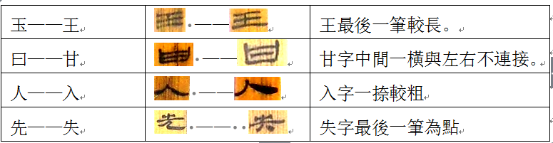 表3:北大簡《老子》中的四組形近字及其區(qū)別特徵