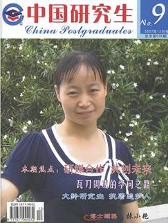 日前,《中國研究生》雜志“博士擷英”欄目對我中心副教授、2006年度全國優(yōu)秀博士學(xué)位論文獲得者張小艷博士進(jìn)行了專訪,并以《恬淡如斯 暗香獨(dú)蘊(yùn)》為題對張小艷副教授的先進(jìn)事跡進(jìn)行了長篇報(bào)道。報(bào)道刊登于《中國研究生》2007年12月號(hào),同時(shí)張小艷副教授成為該期雜志的封面人物。