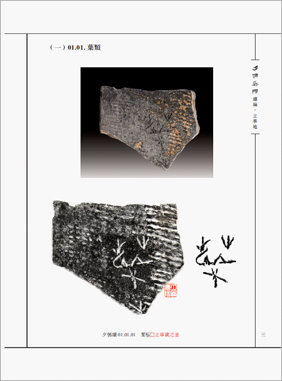 《夕惕藏陶續(xù)編》是繼《夕惕藏陶》之後,對沂水陶文的專門著録。全書分爲(wèi)兩部分:一是近年所見尚未公開發(fā)表過的沂水陶文實(shí)物資料、拓本、照片;二是對發(fā)表過的、《夕惕藏陶》之外的沂水陶文一併進(jìn)行了彙集。因此,《夕惕藏陶續(xù)編》是當(dāng)下對沂水陶文的全面著録和整理。