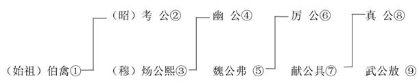 由此可證,《世本》所記下一列伯禽、煬、魏、獻、武等五君均是直系,這就是《魯語》“工史書世”的“世”。而上一列考、幽、厲、真四君,則為旁系。這就是《魯語》“宗祝書昭穆”中兼記旁系的“昭穆”。由此可證,晉型三國只保存了“世”的記錄,比魯國所缺失的三位在位國君,都屬旁系。因而在晉型三國西周世系中被排除在外了。