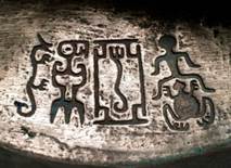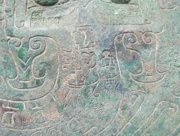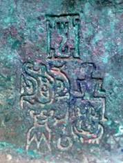 ]為一個方國的族徽,亞什麼,這種族徽形式在商代晚期很多,學(xué)者認(rèn)為此種的族徽是在商周宗法制度基礎(chǔ)上,五世遷宗後的基本族徽。亞[