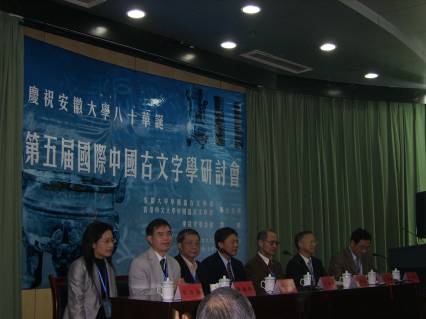 2008年4月8日至10日,第五屆國(guó)際中國(guó)古文字學(xué)研討會(huì)在安徽大學(xué)龍河校區(qū)逸夫圖書(shū)館舉行,此次會(huì)議由安徽大學(xué)中國(guó)語(yǔ)言文學(xué)系和香港中文大學(xué)中國(guó)語(yǔ)言文學(xué)系聯(lián)合主辦。參加會(huì)議的主要有來(lái)自中國(guó)大陸及港臺(tái)地區(qū)和新加坡、日本等地的50多位專(zhuān)家學(xué)者。與會(huì)者主要就青銅器研究、簡(jiǎn)帛研究等專(zhuān)題進(jìn)行了討論。