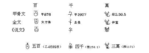 十以上的數(shù)碼字還有百、千、萬,它們的古文字形如下: